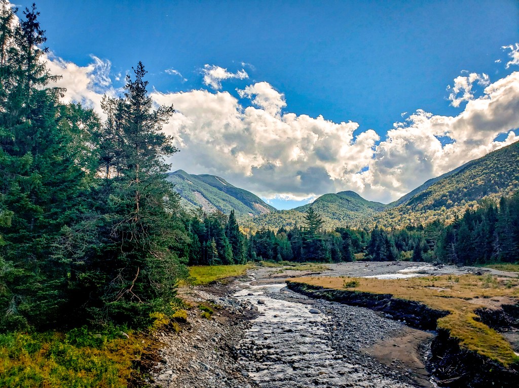 So, Marcy Dam Pond drained away, its famous reflection made miniature in the brook that now flows across the site. The five of us sat on stones and bits of dam corpse, surveying its remaining bones, stained by thousands of gallons of tannin-laced water and sunlight. I liked the idea of real trout swimming through its ribcage. Looking out across what had been a lakebed, grass had begun to grow, miniature savannahs atop plateaus of sediment. The brook split into small and large branches, chattering over and between smooth stones. Nature was redecorating.