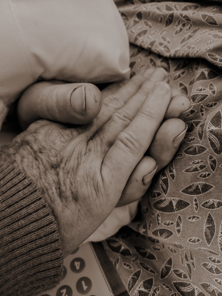 My mother holding my father’s hand.